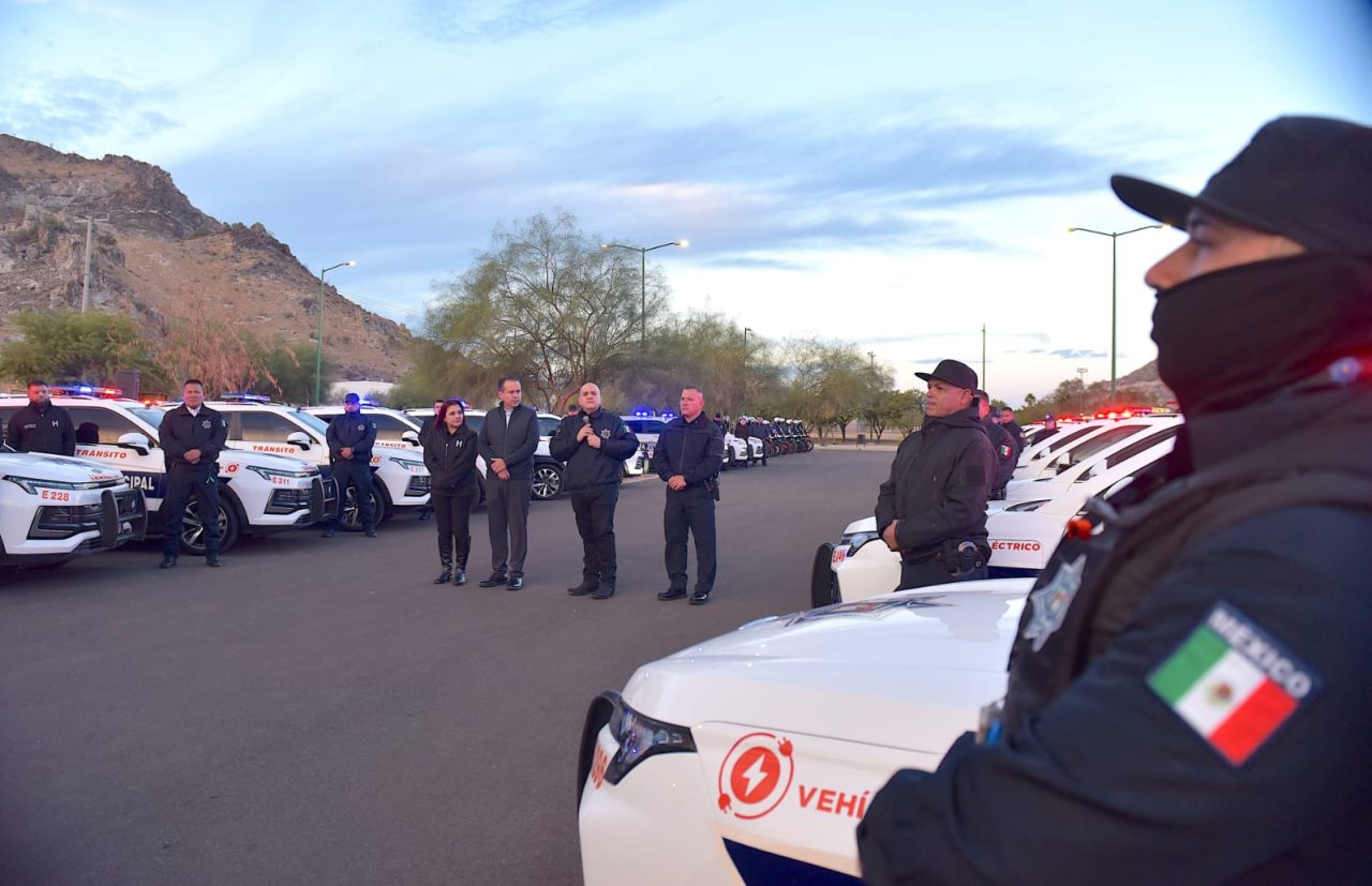 Junto con Manuel Emilio Hoyos Díaz, Comisario General de la Policía Preventiva y Tránsito Municipal, mandos medios y agentes preventivos y de Tránsito, Toño Astiazarán agradeció a todas y todos en la corporación por los buenos resultados de su trabajo, que proyectan a Hermosillo como la ciudad más segura de Sonora y la capital del país con mayor reducción de la percepción de inseguridad.