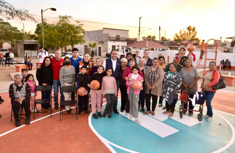 Presentes familias de la colonia La Caridad, Astarté Corro Ruiz, titular de CIDUE; Daniel García Escalante, director de Participación Ciudadana; Armando Labrada García, director del Instituto del Deporte de Hermosillo (IDH); Gerardo Togawa, director de Infraestructura de CIDUE y la regidora Zulma Galaz.