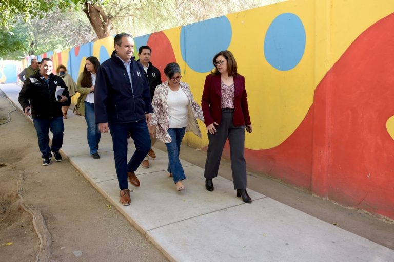 En su visita al centro escolar, Toño Astiazarán constató la construcción de un andador de concreto y la remodelación de baños, que se ejecutaron en 2022 y también la rehabilitación de la cancha deportiva que se concretó en 2023.