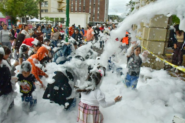 Personas de todas edades vivieron un domingo de Víactiva disfrutando de las amenidades que ya son componente cotidiano de esta estrategia municipal y a las que se agregó una fiesta de espuma para disfrute de niñas y niños.