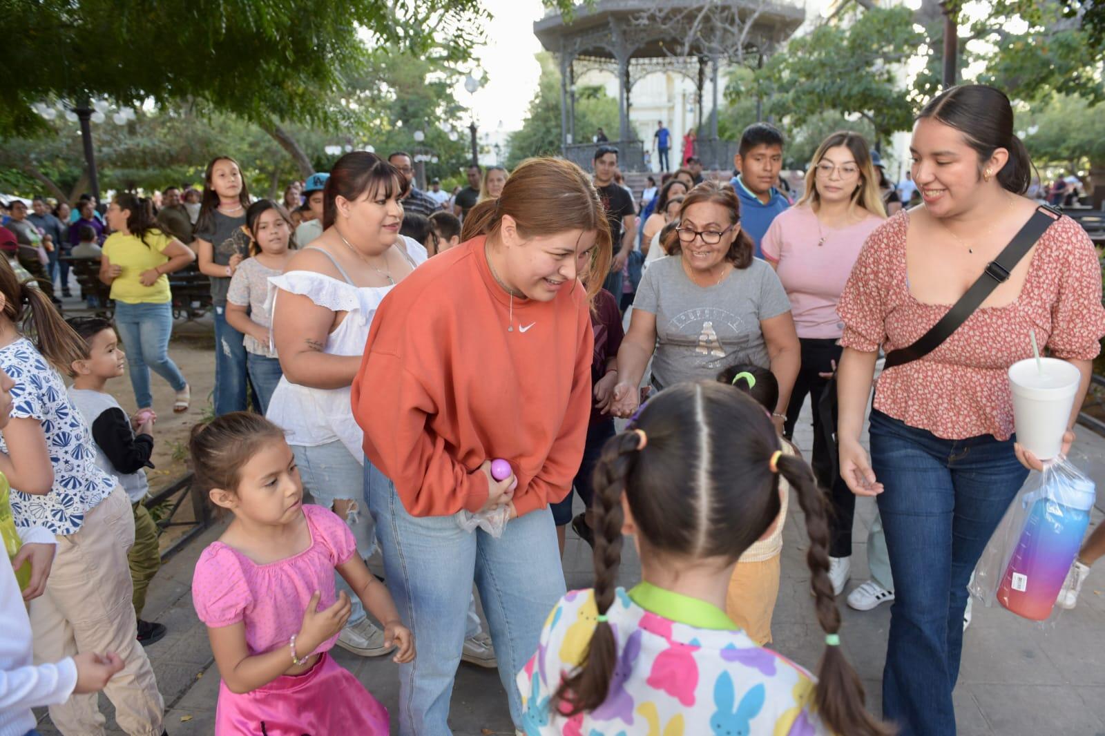 Con el apoyo de comerciantes de la Plaza Zaragoza, niñas y niñas recibieron premios cuyos vales estaban dentro de los huevos que fueron escondidos previamente alrededor del lugar.