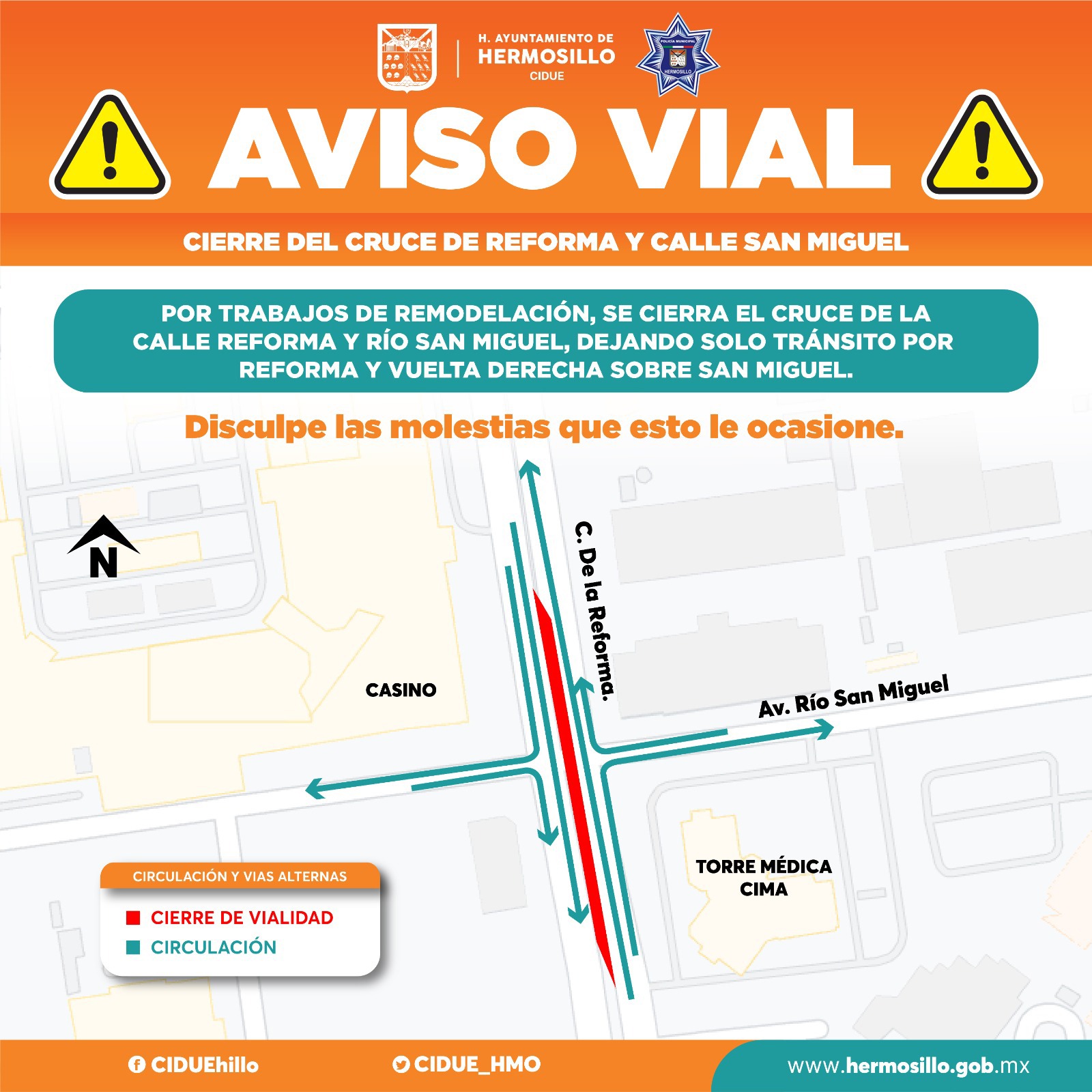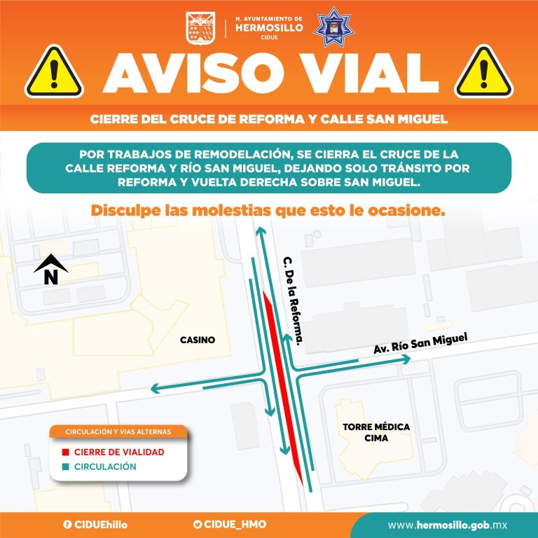 Recomiendan circular por la avenida Serna y bulevar Proyecto Río Sonora de oriente a poniente y viceversa