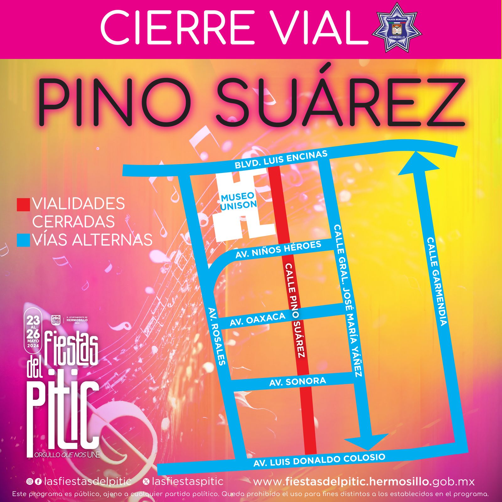 Dijo que durante los eventos en el foro Pino Suárez se cerrará la circulación vehicular en la avenida Cultura; la calle Yáñez desde el bulevar Encinas a la calle Elías Calles  y en la Rosales desde Luis Encinas hasta Manuel Z. Cubillas.
