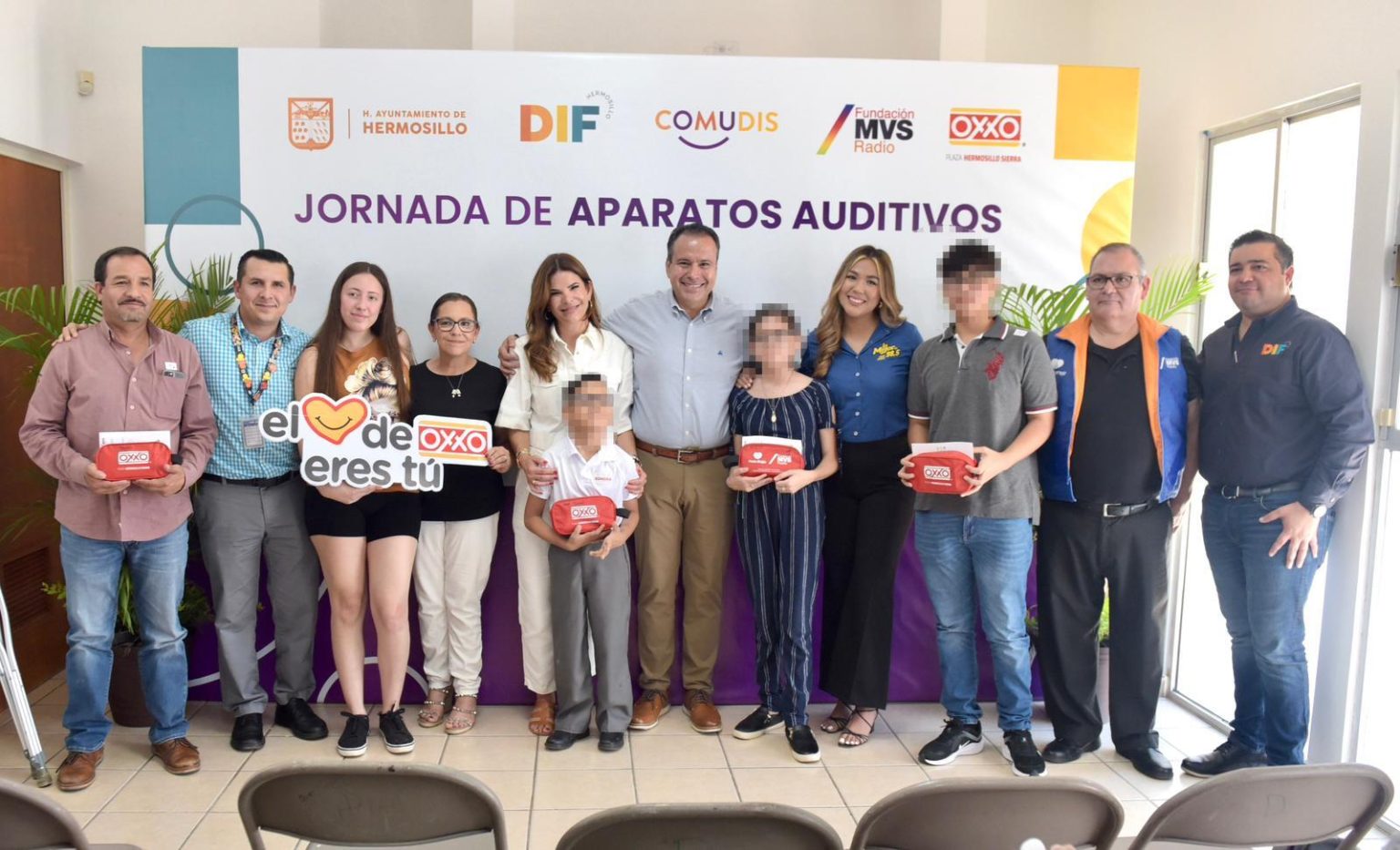 Personas de todas edades que viven con dificultad para escuchar se beneficiaron de la jornada “Ponte Oreja”, en la que DIF Hermosillo, la empresa OXXO y la Fundación MVS Radio se coordinaron para financiar y entregarles sin costo auxiliares auditivos.