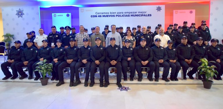 El Presidente Municipal encabezó el acto de bienvenida y protesta formal de las y los 46 agentes en compañía de Víctor Hugo Enríquez García,  Secretario de Seguridad Pública del Estado Víctor; Manuel Emilio Hoyos, Comisario General de la corporación municipal; la regidora Zulma Galaz Angulo y Félix Tonella Platt, presidente del Comité de Seguridad Pública.