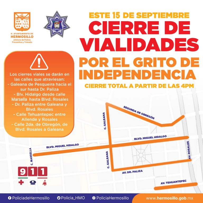 El vocero de Tránsito dijo que el 15 de septiembre estarán cerrados los accesos del bulevar Rosales al poniente desde la calle Pedro Moreno hasta la avenida Manuel Z. Cubillas.