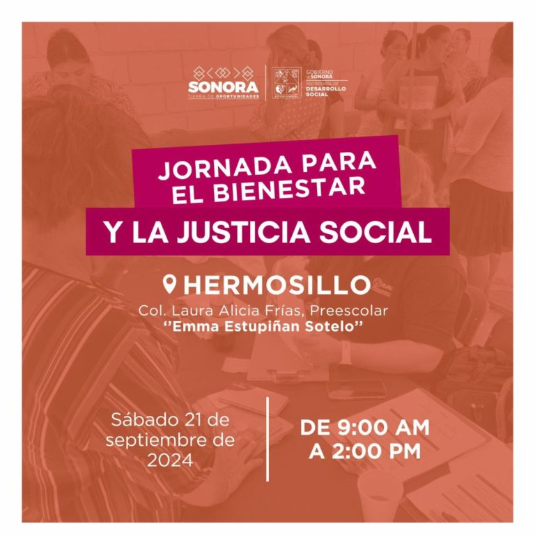 Con el fin de acercar más de 50 trámites y servicios gratuitos a la comunidad hermosillense el Gobierno de Sonora, a través de la Secretaría de Desarrollo Social (Sedesson), invita a la próxima Jornada Para el Bienestar y la Justicia Social en la colonia Laura Alicia Frías de López Nogales.