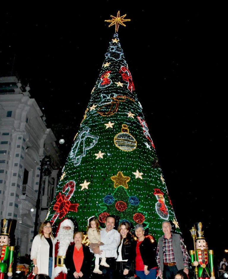 La magia de la Navidad inició en el Centro Histórico con el tradicional encendido del árbol en la Plaza Zaragoza, junto a toda la decoración de alrededor y de otros puntos de la ciudad, momento que atestiguaron con emoción este domingo las familias hermosillenses.