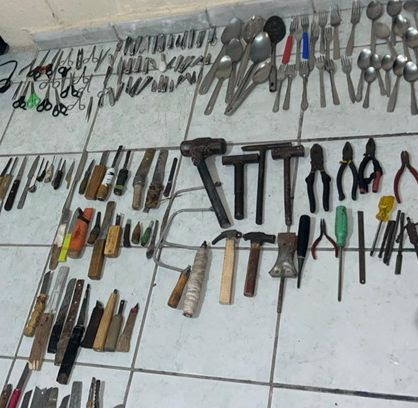 Durante las labores de inspección se decomisaron objetos prohibidos, entre ellos televisores, puntas, objetos de metal, cuchillos, herramientas, utensilios de cocina, cables, tijeras, cinturones, juegos de azar y objetos de santería