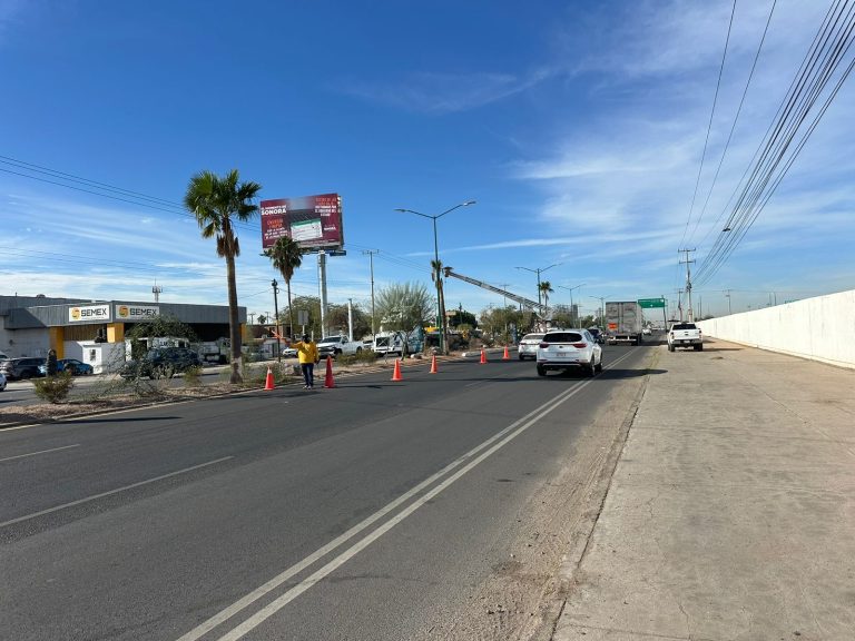 Elementos de la Coordinación de Infraestructura, Desarrollo Urbano y Ecología (CIDUE) que laboran en horario nocturno avanzaron con la instalación de un arco de seguridad vial en la carretera que conecta con Guaymas y otro a la altura del Aeropuerto de Hermosillo.