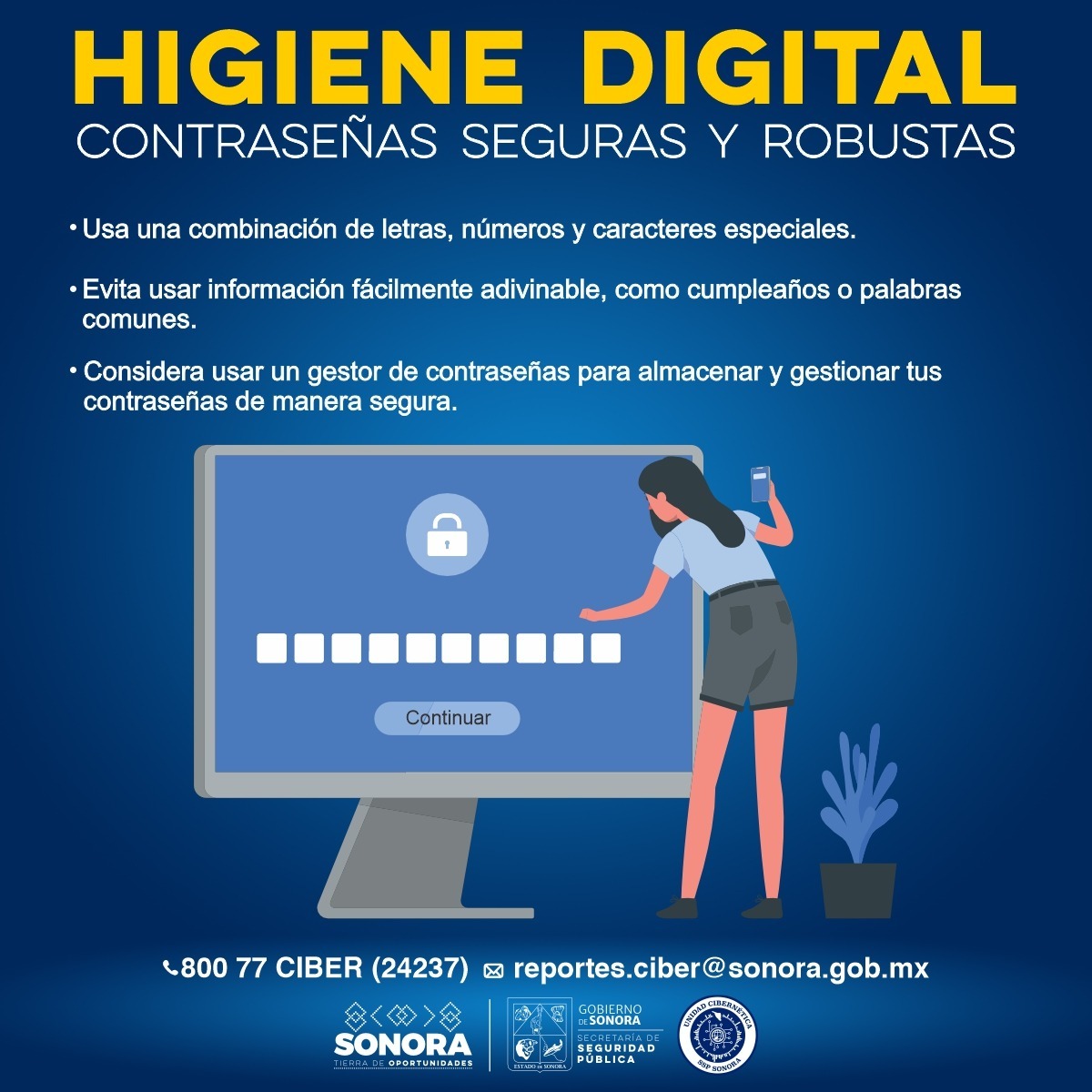 Para prevenir que las y los sonorenses sean víctimas de delitos cibernéticos como el robo de contraseñas, la Secretaría de Seguridad Pública (SSP) compartió una serie de recomendaciones y buenas prácticas que son indispensables para mantener una correcta higiene digital.