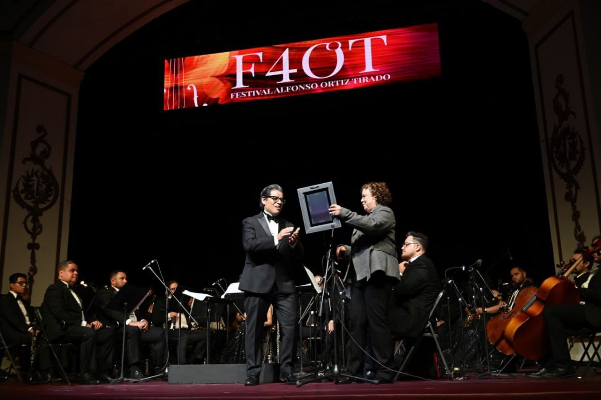 Álamos, Sonora; 26 de enero de 2025.- En la segunda noche de gala del Festival Alfonso Ortiz Tirado, los asistentes pudieron deleitarse con la presentación de la soprano Othalie Graham y la Banda Sinfónica del Estado de Sonora, la cual recibió un reconocimiento por sus 45 años de trayectoria.