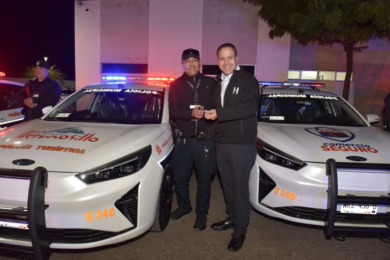 “Más vigilancia significa más cercanía de la Policía Municipal en las colonias y esa más cercanía también más tranquilidad, para más familias hermosillenses en la Nuevo Hermosillo”, expresó Antonio Astiazarán Gutiérrez en la entrega de diez patrullas eléctricas y un sistema fotovoltaico en la colonia Nuevo Hermosillo.