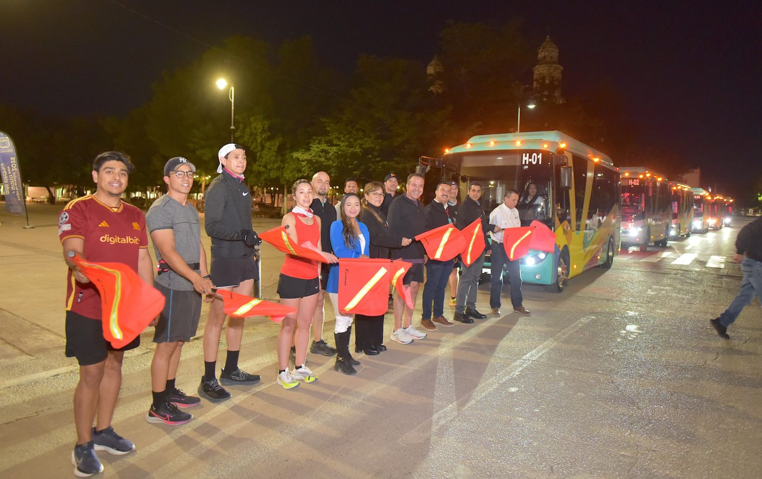 El H Bus ya está en ruta, expresó Antonio Astiazarán Gutiérrez al dar el banderazo de salida a los once camiones eléctricos que desde las 5:00 am entraron en funciones para transportar de manera gratuita a estudiantes universitarios.