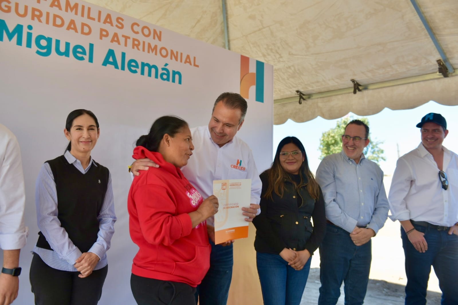 Acompañado por Luis Ernesto Nieves Robinson Bours, titular de Promotora Inmobiliaria de Hermosillo entregó este documento que garantiza la estabilidad, desarrollo y calidad de vida de familias que durante años lucharon por un lugar para habitar.