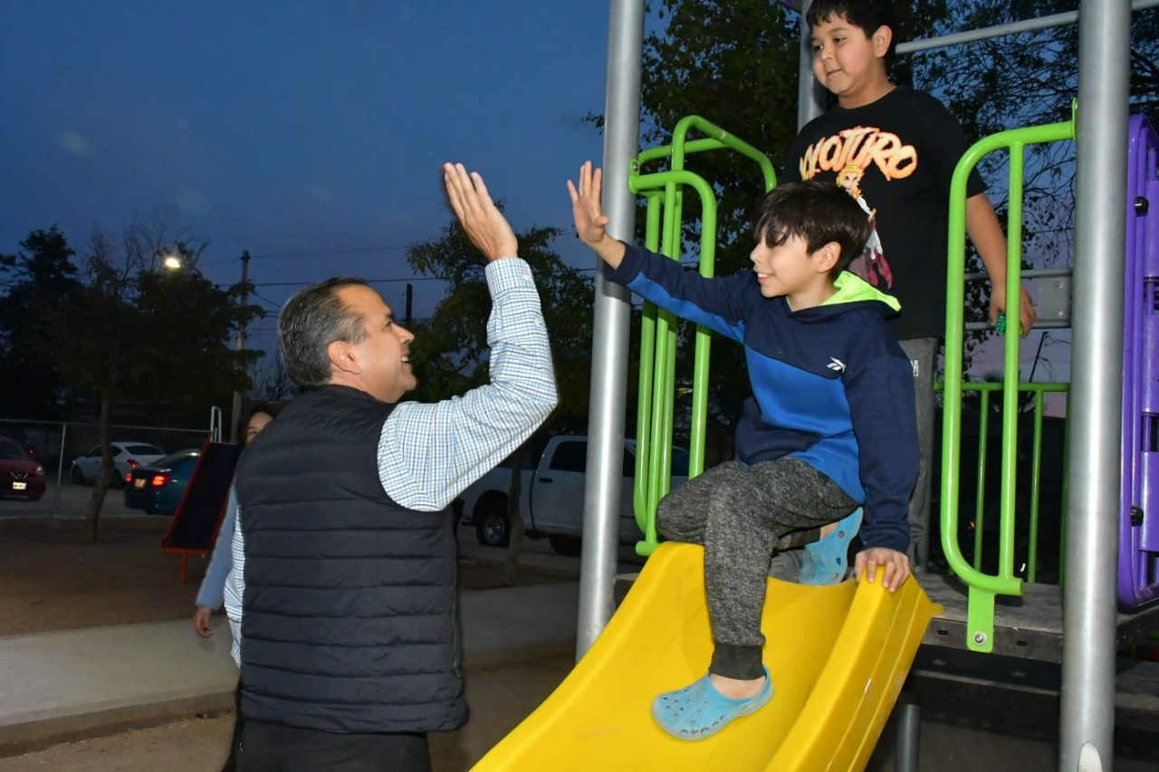 El presidente municipal de Hermosillo, Antonio Astiazarán Gutiérrez correspondió a la confianza de vecinas y vecinos de la colonia Los Olivos al entregarles ya rehabilitado el parque Escorpión Dorado.