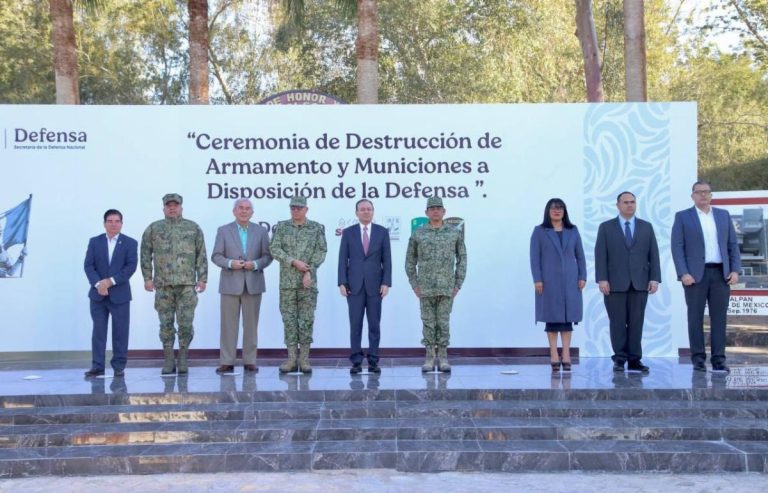Como parte de la estrategia de coordinación interinstitucional entre las corporaciones que integran la Mesa Estatal de Seguridad, el gobernador Alfonso Durazo Montaño encabezó la ceremonia de destrucción de armamento y municiones aseguradas por el Ejército Mexicano, con el objetivo de fortalecer la seguridad y proteger la integridad de la ciudadanía.