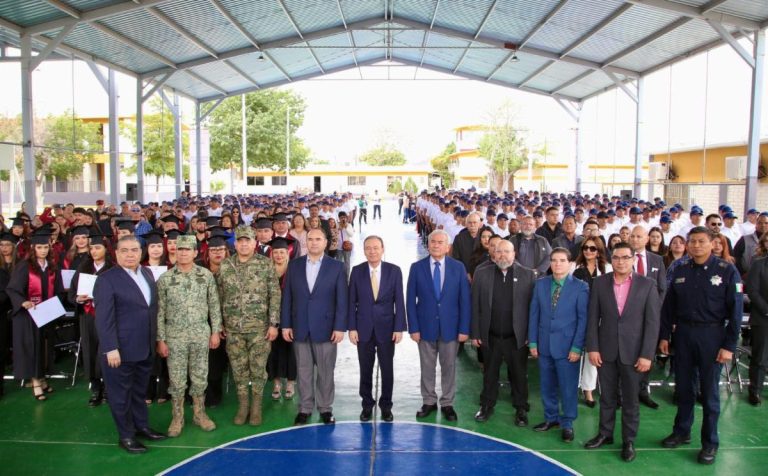 Durante el evento, realizado en la explanada de la Universidad de la Seguridad Pública del Estado de Sonora (USP), el mandatario estatal destacó la importancia de la profesionalización de los cuerpos de seguridad para la construcción de un estado más seguro para la ciudadanía.