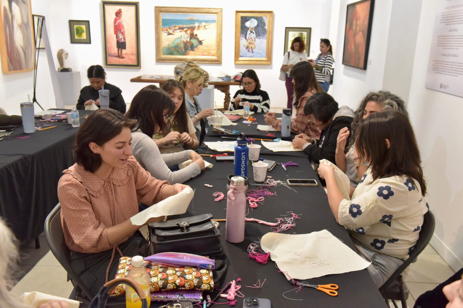 El encuentro tuvo como sede la Galería Oasis 179, donde se realizó una mesa de reflexión moderada por Ana Ivette Rodríguez y se impartió el taller de bordado colectivo Desbordadas, coordinado por Perla Jiménez, en el cual tejieron redes entre ellas para emprender proyectos en conjunto.