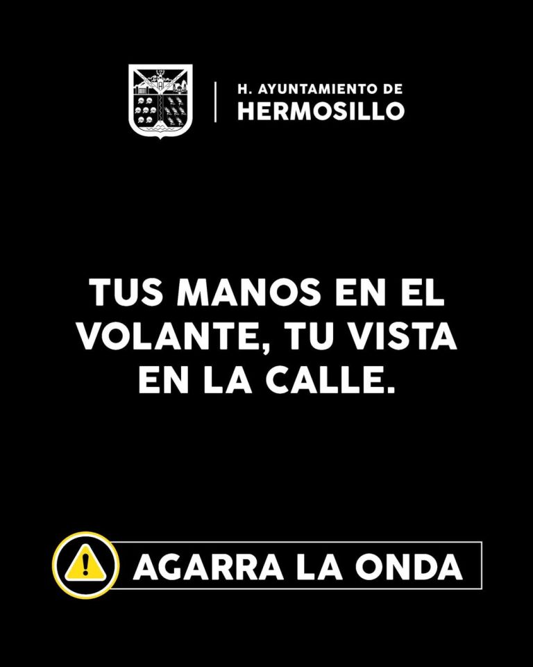 Exhortó a los automovilistas a sumarse a la campaña preventiva que impulsa el Ayuntamiento de Hermosillo #AgarraLaOnda con el fin de que conductores y peatones lleguen con bien a su destino.