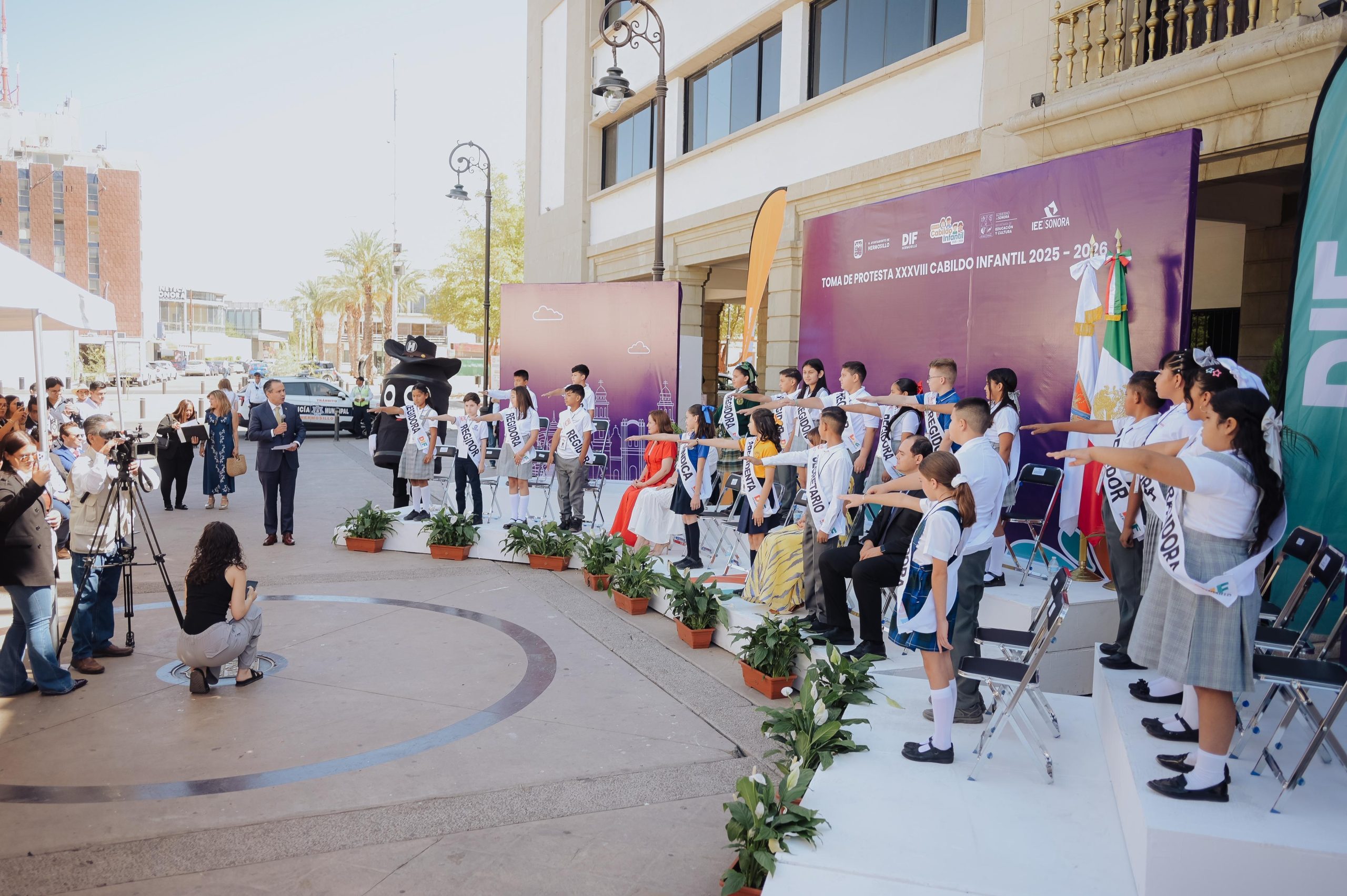 El Presidente Municipal Antonio Astiazarán Gutiérrez y Patricia Ruibal Zaragoza, Presidenta de DIF Hermosillo dieron la bienvenida a quienes durante un año asesorarán y aportarán su perspectiva, ideas y propuestas al quehacer del Ayuntamiento, en su calidad de integrantes del Cabildo Infantil y el Consejo Municipal Infantil.