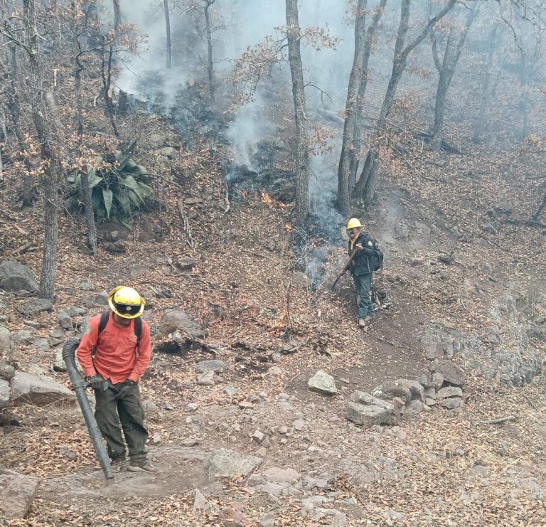 En el lugar se cuenta con brigadistas de la Comisión Nacional Forestal (Conafor), la Secretaría de la Defensa Nacional (Defensa), voluntarios, así como personal de la Dirección de Atención a Emergencias y Desastres de la Coordinación Estatal de Protección Civil (CEPC).