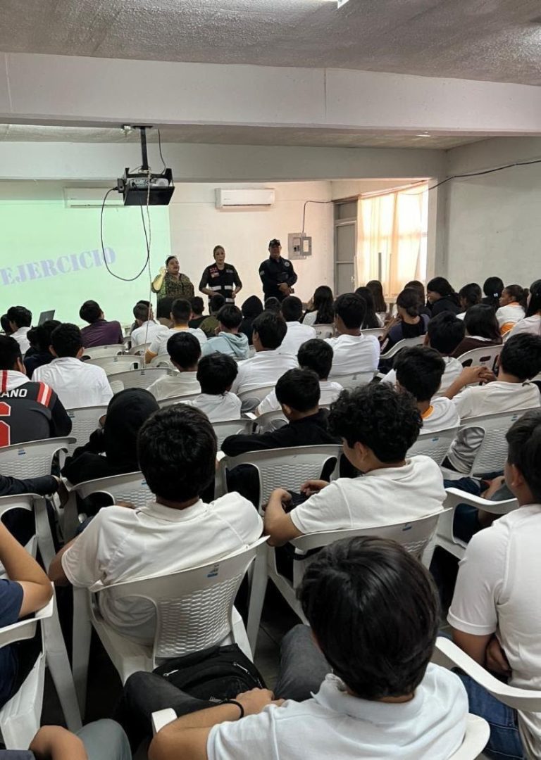 Como parte de la estrategia Jornada Permanente por la Paz que impulsa la SSP, Burgos Villaescusa explicó, que se trabaja de manera continua en los municipios, mediante acciones en planteles educativos en coordinación con la Secretaría de Educación y Cultura (SEC), para acercar a las y los estudiantes temas como el impacto de las adicciones, la prevención de violencias y el uso responsable de la línea de emergencias 9-1-1 y la denuncia anónima al 089.