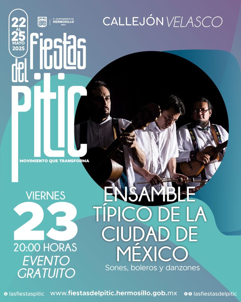 El viernes 23 de mayo el cantante argentino Fede Dorcaz, presentará su concierto en esta misma sede a las 19:00 con la que mostrará a hermosillenses y visitantes su propuesta musical en la que fusiona pop, rock y elementos electrónicos y a las 20:00 horas se contará con la presentación del “Ensamble Típico de la Ciudad de México” que interpretará sones, boleros y danzones, mencionó la funcionaria.