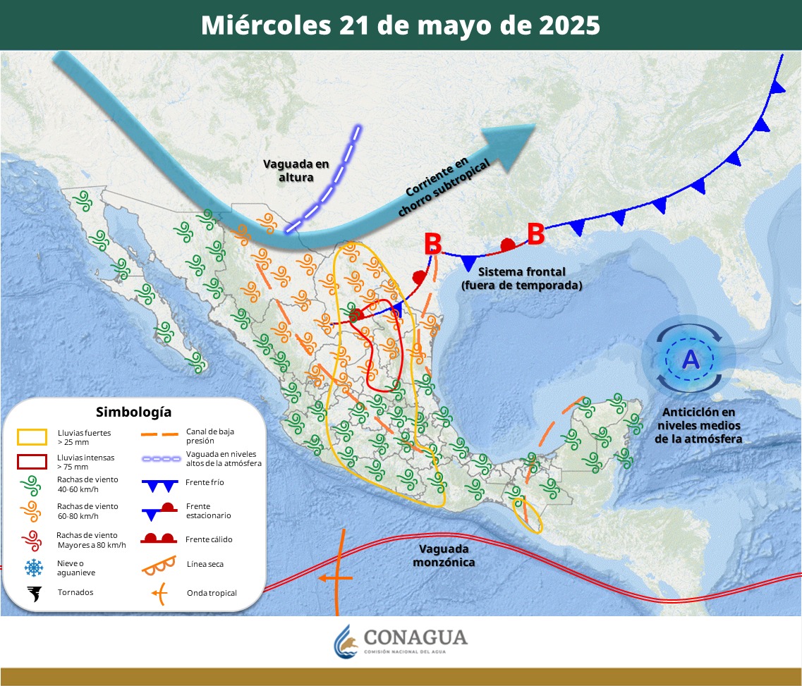 Basándose en la valoración y análisis de la información meteorológica en general y con base en información del Servicio Meteorológico Nacional y diferentes fuentes oficiales de los Estados Unidos, la Coordinación Estatal de Protección Civil emite el siguiente pronóstico: