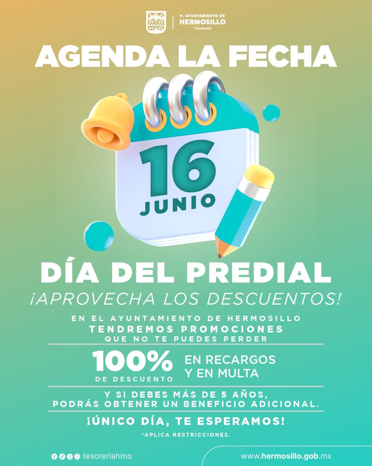 “Si debes más de cinco años de predial, vamos a tener muy buenos planes para que te regularices; también contaremos con la presencia del personal de Agua de Hermosillo, con descuentos en consumo doméstico y convenios de pago”, expresó Anaya Camargo.