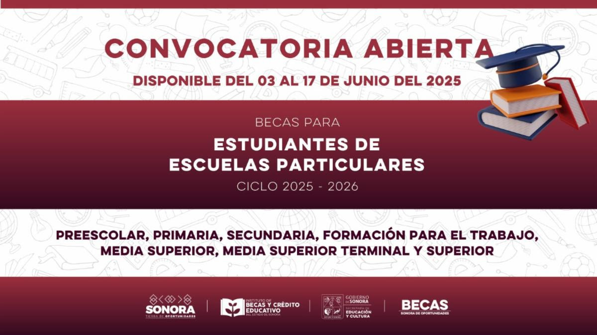 La dependencia estatal detalló que el registro finaliza el martes 17 de junio, y las solicitudes deberán realizarse, sin excepción, única y exclusivamente en la página web oficial del Instituto: https://becasycredito.sonora.gob.mx/.