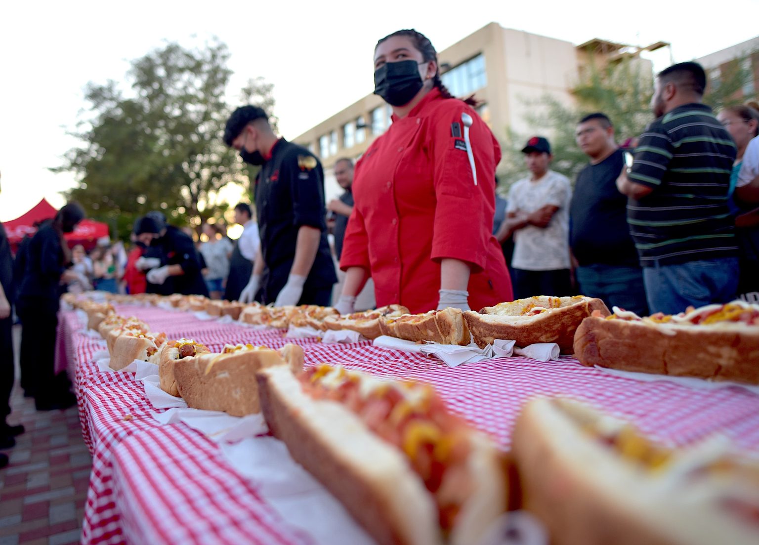 A la exitosa celebración se sumaron alumnos y docentes de la Licenciatura en Gastronomía de la Universidad Durango Santander quienes participaron entusiastamente en la elaboración del monumental “Dogo Más Grande de la H” con seis metros de longitud que atrajo aplausos entre asistentes de todas las edades.