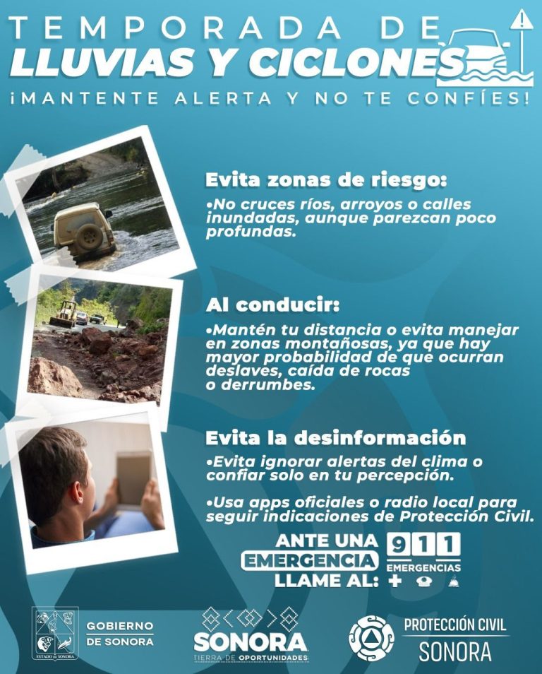 El Gobierno de Sonora reitera su compromiso con la seguridad de la población e invita a seguir los canales oficiales de Protección Civil para mantenerse informados.