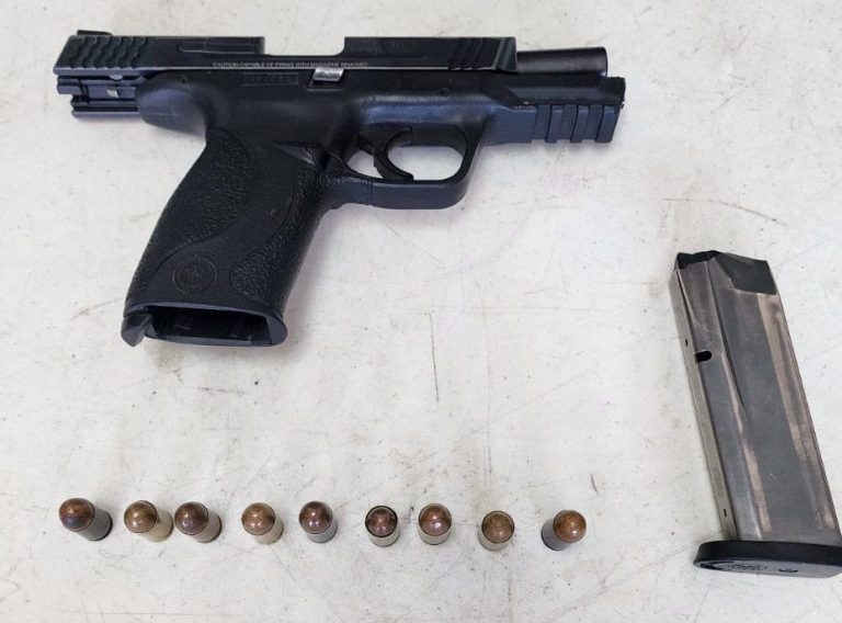 El operativo coordinado efectuó la detención de las dos personas que abordaban un vehículo Jeep, Wrangler de color rojo donde llevaban un arma de fuego tipo pistola con nueva cartuchos calibre .45.