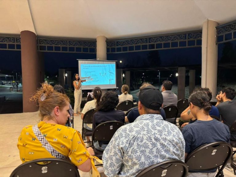 Las actividades iniciaron el viernes 8 de agosto con la charla Econversando: “Calidad del Aire”, a cargo de la Ing. Mónica Gallardo, del Departamento de Cambio Climático de la Comisión de Ecología y Desarrollo Sustentable del Estado de Sonora (CEDES), en la que se presentó el monitoreo ambiental que se realiza en La Sauceda para conocer la calidad del aire y su impacto ecológico en la ciudad.