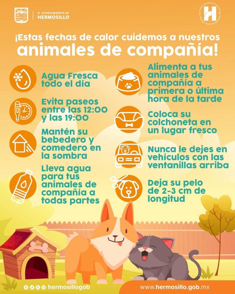 Invitó a alimentar a los animales de compañía ya sea a primera hora del día o bien por las tardes, así como colocarles sus colchonetas en lugares frescos y, preferentemente, mantener el largo de su pelaje entre 2 y 3 centímetros.