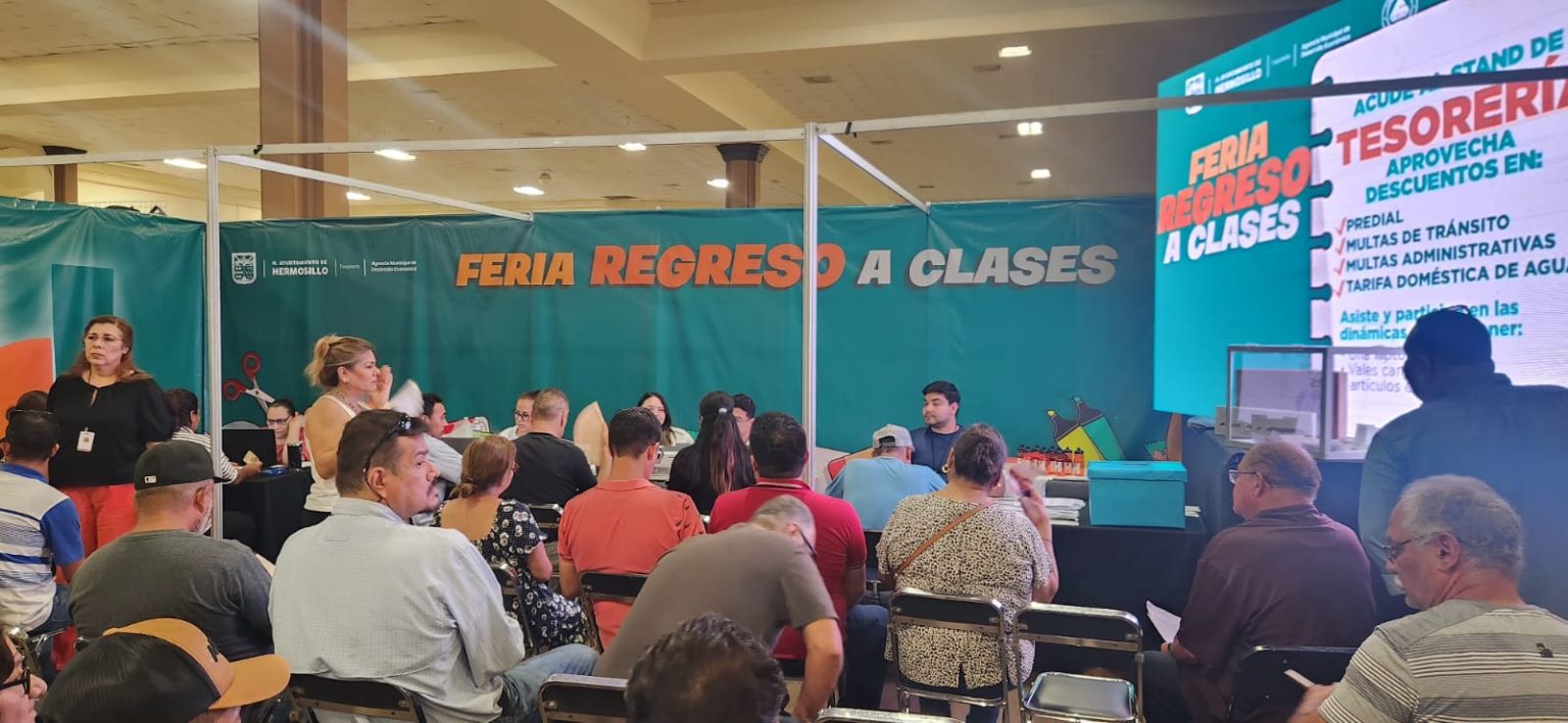 El stand de la Tesorería Municipal continuará este domingo 17 de agosto en la Feria de Regreso a Clases 2025 con horarios de atención de 8:00 a 20:00 horas en el Expofórum donde se ofrecen descuentos y beneficios para las familias hermosillenses.