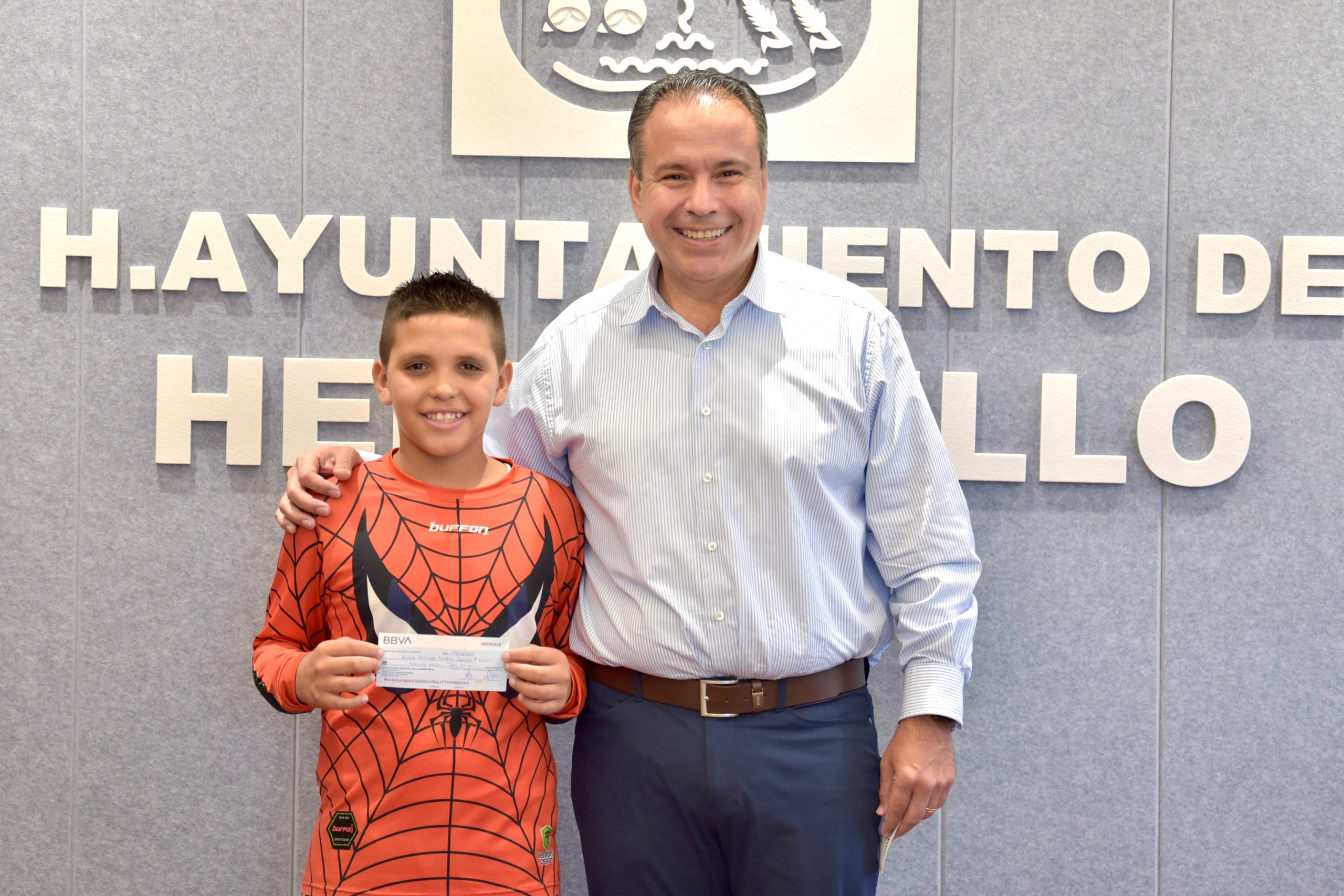 También saludó y entregó sus apoyos a Carlos Abraham Sinohui, futbolista portero que participará en una competencia nacional en la Ciudad de México, y al gimnasta Jesús Adán Balderrama Montes, quien partirá con su entrenador a competir en Costa Rica.