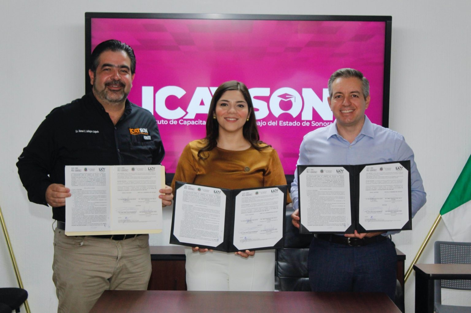 En la firma participaron, por parte del Congreso de Sonora, el diputado presidente Omar Del Valle Colosio (PVEM) y la vicepresidenta Amairany Peña Escalante (PES). En representación del Icatson, acudieron su director general, Manuel Gallegos Salgado, y el director de Vinculación y Promoción, Joel Ayala Rodríguez.