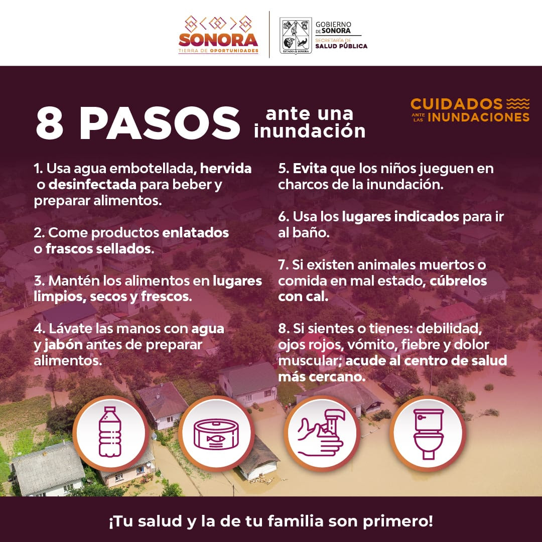 Ante la llegada de la tormenta tropical Lorena y las lluvias que se prevé afecten diversas regiones del estado, el Gobierno de Sonora, a través de la Secretaría de Salud Pública, hace un llamado a la población para que siga las siguientes recomendaciones preventivas, con el fin de proteger su salud y seguridad.