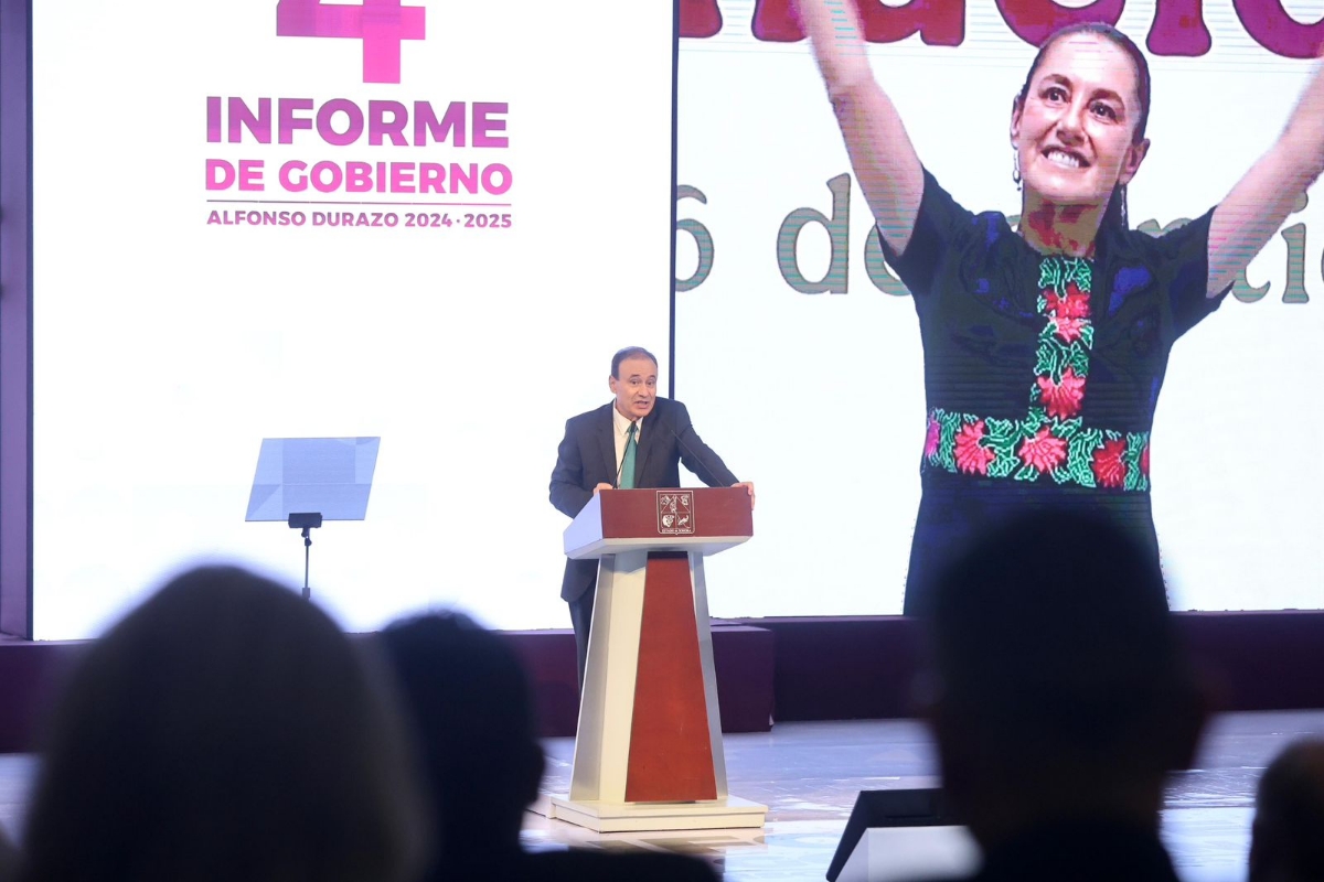 Con resultados que consolidan la transformación de Sonora en vivienda, salud, infraestructura, educación, energía, desarrollo urbano y bienestar social traducido en reducción histórica de la pobreza, el gobernador Alfonso Durazo Montaño presentó su Cuarto Informe de Gobierno, en el que garantiza que el estado avanza a paso firme hacia un futuro más próspero, justo y de mayores oportunidades para las y los sonorenses.