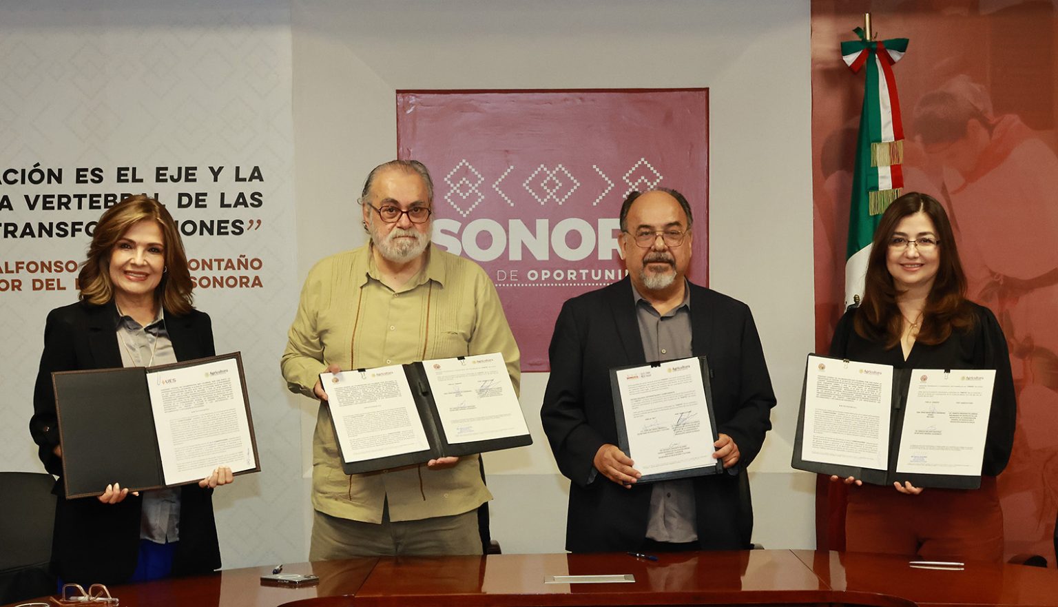 La Universidad de Sonora ratifica su compromiso con la sociedad y con la seguridad y soberanía alimentaria, aseguró la rectora Dena María Camarena Gómez, durante la firma de convenio de la Unison con la Secretaría de Agricultura y Desarrollo Rural, Secretaría de Educación y Cultura, y la Universidad Estatal de Sonora.