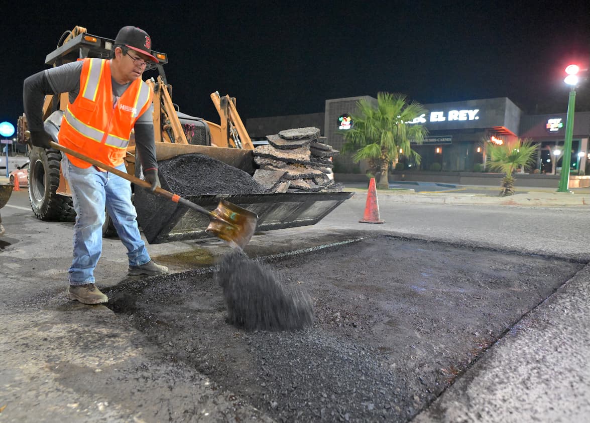 Supervisa Toño Astiazarán bacheo Nocturno en el norte de la ciudad