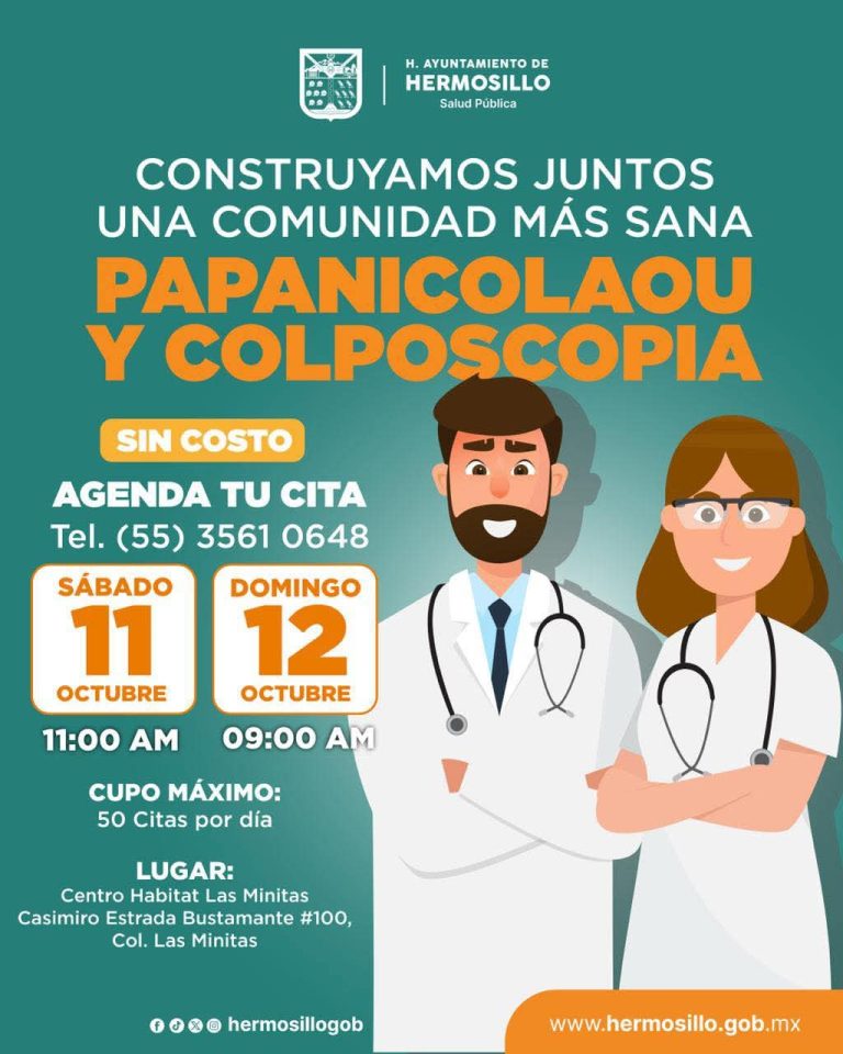 “Vamos a empezar este octubre rosa, tenemos varias campañas por todo Hermosillo y específicamente para este fin de semana tenemos unas jornadas de colposcopía y papanicolaou en el Centro Hábitat de la colonia Las Minitas donde será totalmente gratuito”, agregó.