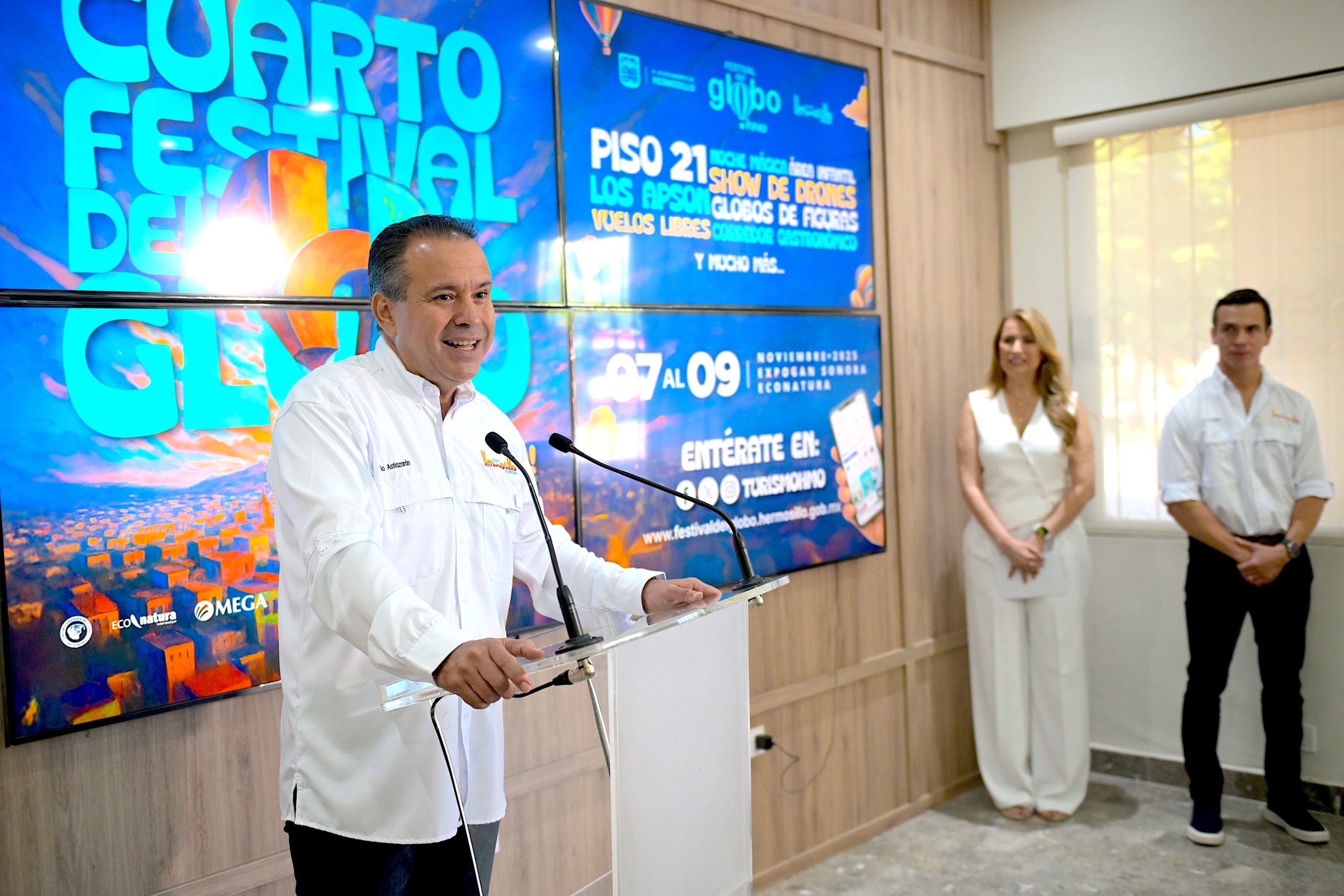 Hermosillo está listo para llenarse de color, música y diversión con la cuarta edición del Festival del Globo, anunció el presidente municipal Antonio Astiazarán, quien invitó a las familias a disfrutar de este espectáculo único que combina paisajes inolvidables con 20 globos aerostáticos, concierto gratuito de Piso 21 y muchas actividades.