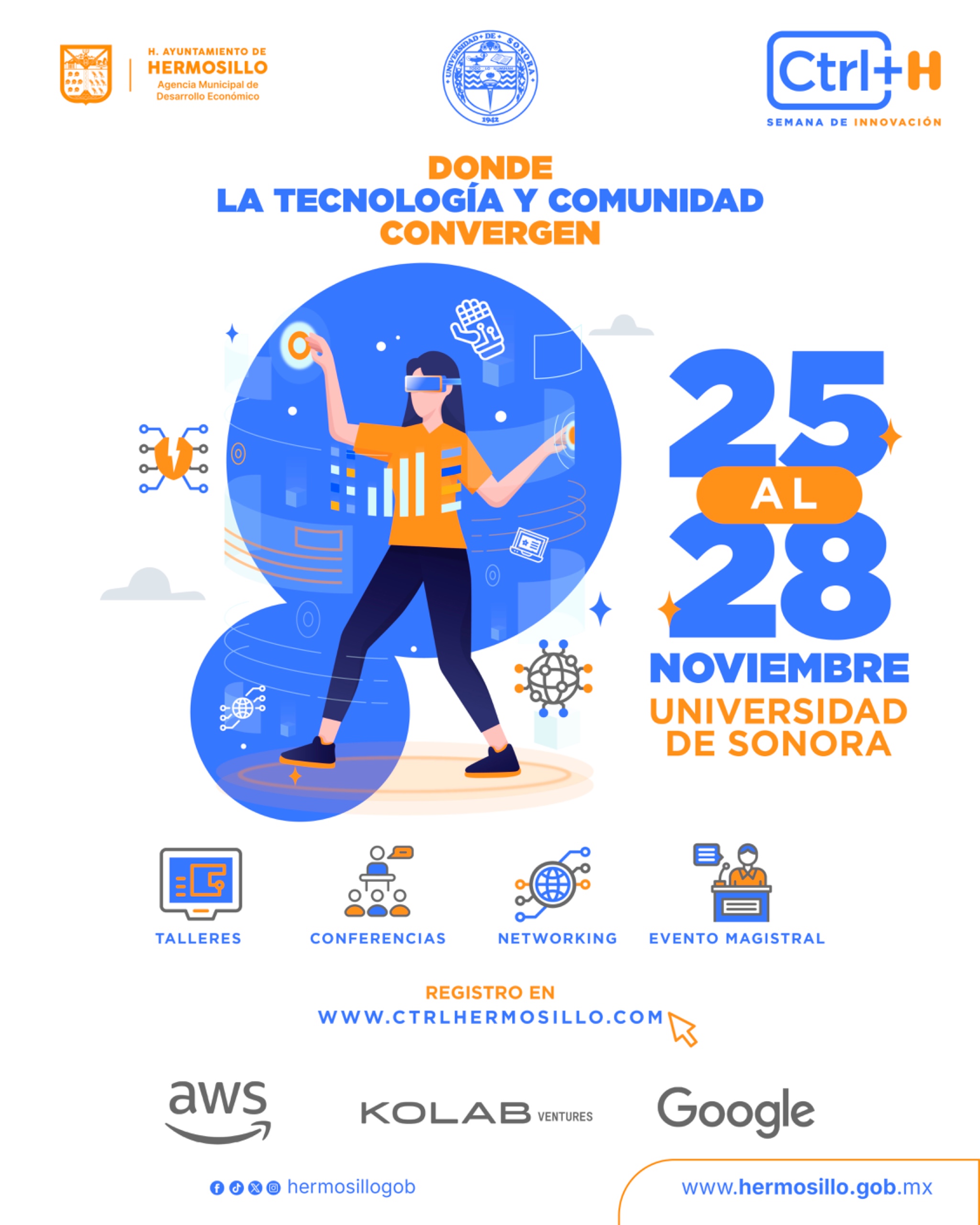 Organizado por Kolab, el Ayuntamiento de Hermosillo, la Universidad de Sonora, Google Developer Groups y AWS User group Hermosillo, CTRL+H ofrecerá charlas técnicas, workshops prácticos y sesiones con Googlers, AWS heros, AWS UG Leaders, Google Developer Experts, Ingenieros de IBM, AstraZeneca, BAT, Finastra y especialistas locales, diseñadas para inspirar, retar y fortalecer el ecosistema de innovación en Sonora.
