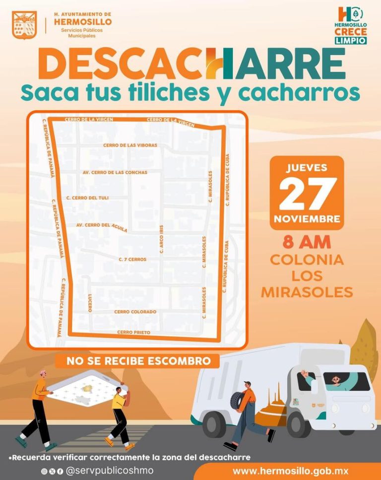Realizará Gobierno de Hermosillo jornada de descacharre este jueves en la colonia Los Mirasoles