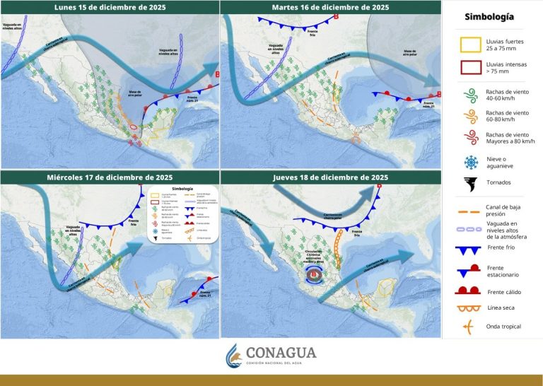 Para este día, la corriente en chorro subtropical originará cielos parcialmente nublados sobre las regiones centro, sur y oriente, sin probabilidad de lluvia. Se prevé un ambiente cálido en las regiones centro, sur y noroeste, con temperaturas que podrían superar los 30 grados centígrados en algunos puntos de la entidad durante la tarde.