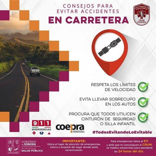 Durante las fiestas decembrinas y la temporada invernal, la Secretaría de Salud (SSP) del Gobierno de Sonora hace un llamado a la población y a quienes visitan el estado a cuidar su seguridad, ya que en estas fechas aumenta el flujo de personas y los traslados por carretera.