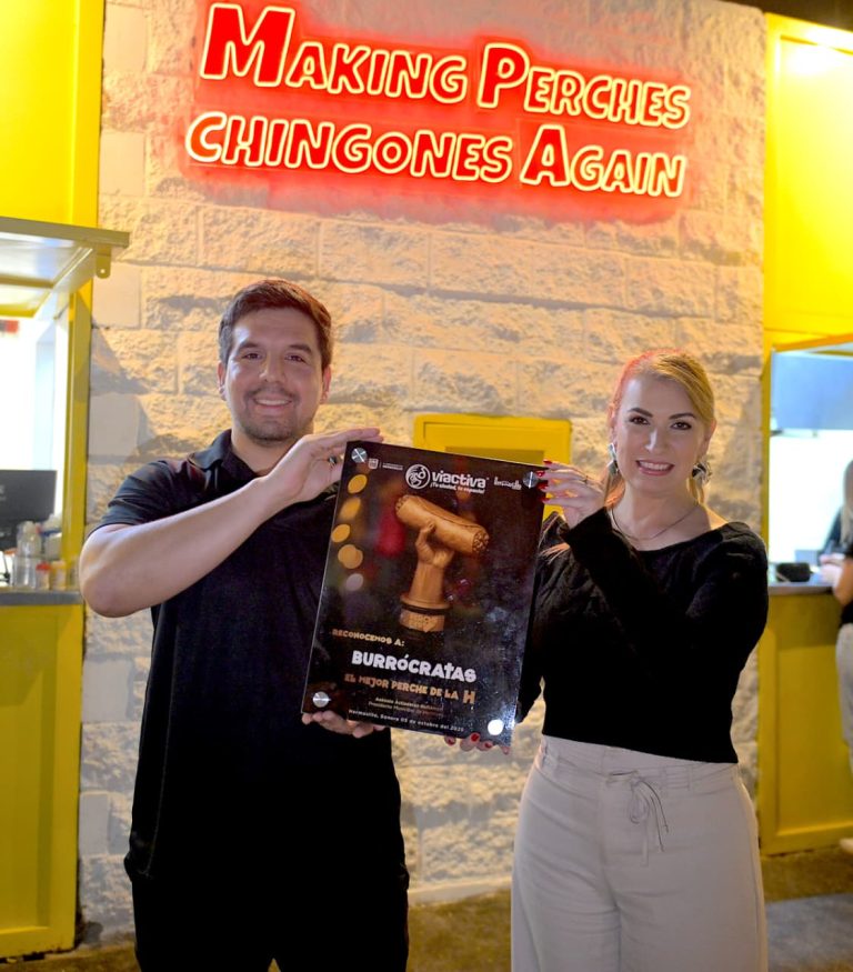 El inconfundible sazón de «Burrócratas» los llevó a coronarse como «El Mejor Perche de La H», distintivo que Fernanda Cisneros Rodríguez, directora de Desarrollo Turístico de la Agencia Municipal de Desarrollo Económico (AMDE) entregó por su sobresaliente participación en el «Perchefest 2025».